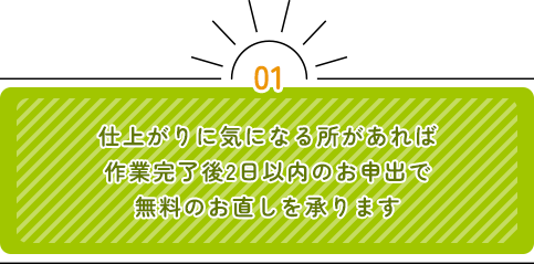 作業完了後2日以内にお申出いただければ、無料で再度作業を行います。